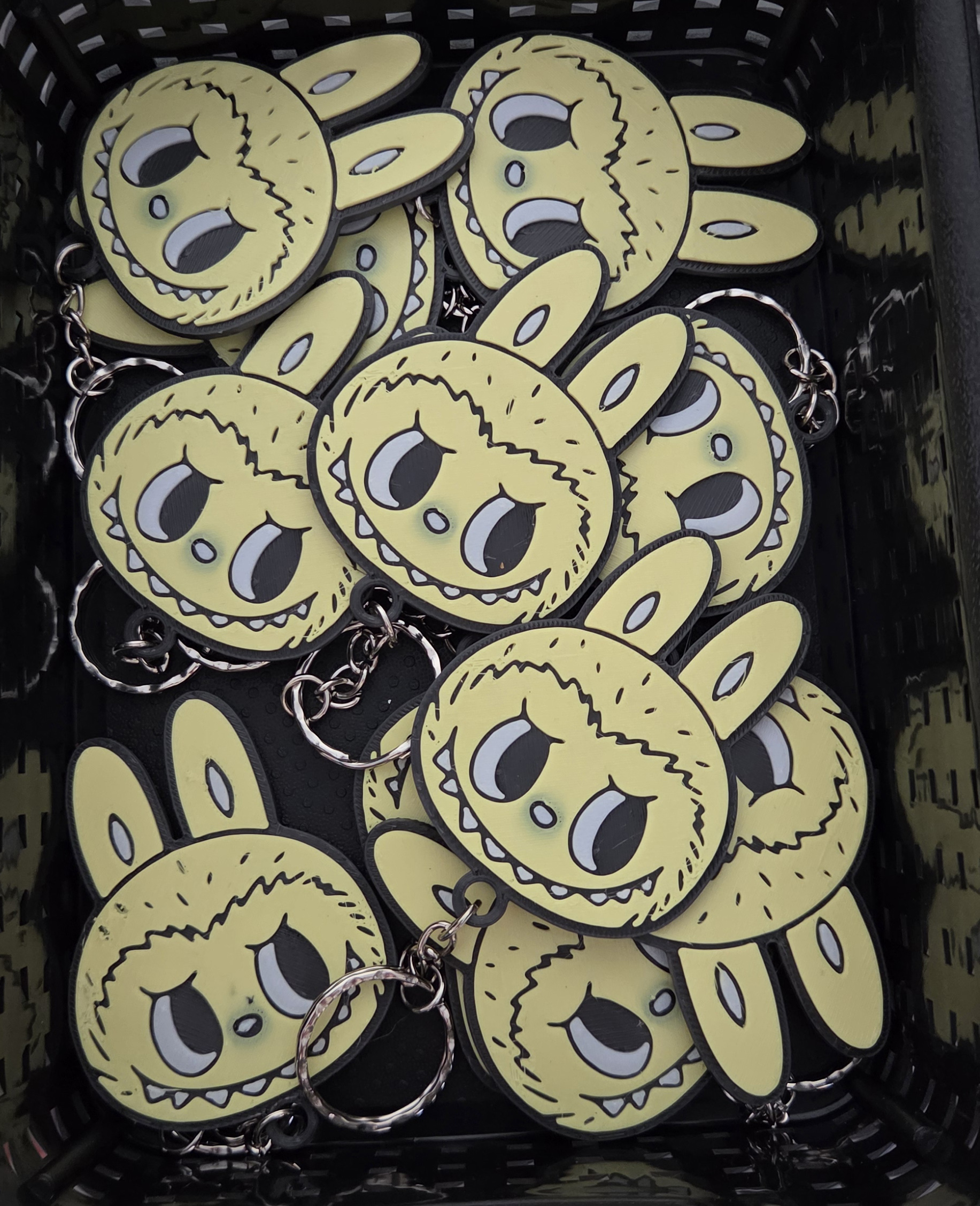 Ces adorables porte-clés en forme de lapin Jaune au sourire espiègle sont réalisés artisanalement en impression 3D dans notre atelier en Belgique.