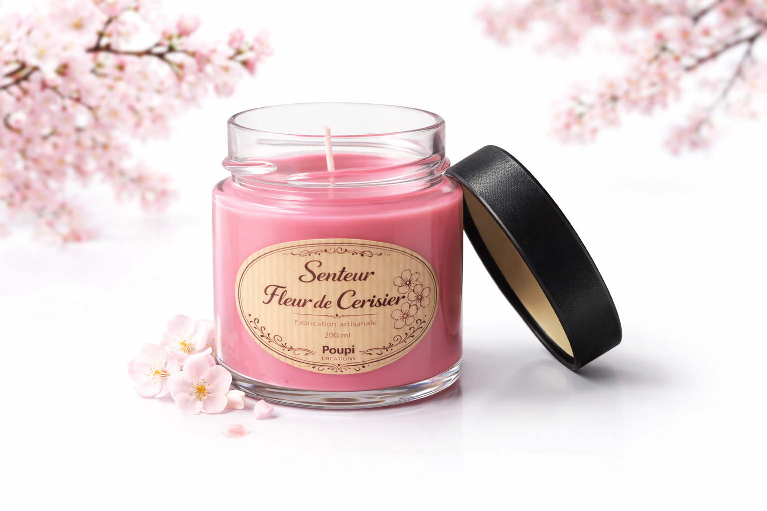 Laisse-toi envelopper par la douceur printanière de notre bougie artisanale Fleur de Cerisier, une senteur délicate, florale et apaisante, parfaite pour créer une ambiance cocooning et raffinée 🌸