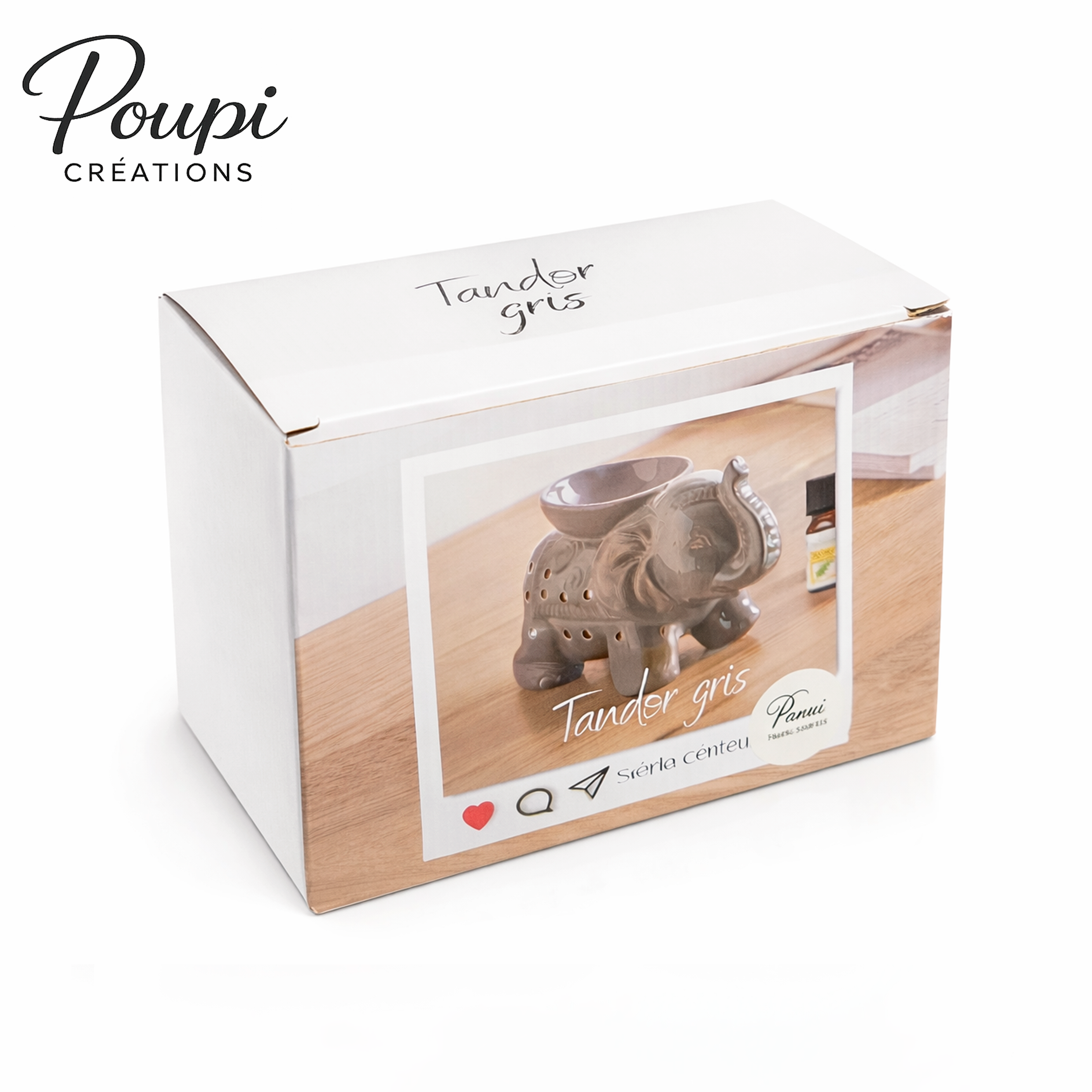 Le brûle-parfum Tander gris séduit par son design attendrissant en forme d’éléphant, apportant une touche décorative douce et originale à votre intérieur. À la fois décoratif et fonctionnel, il diffuse délicatement vos fondants parfumés pour créer une ambiance chaleureuse et apaisante.