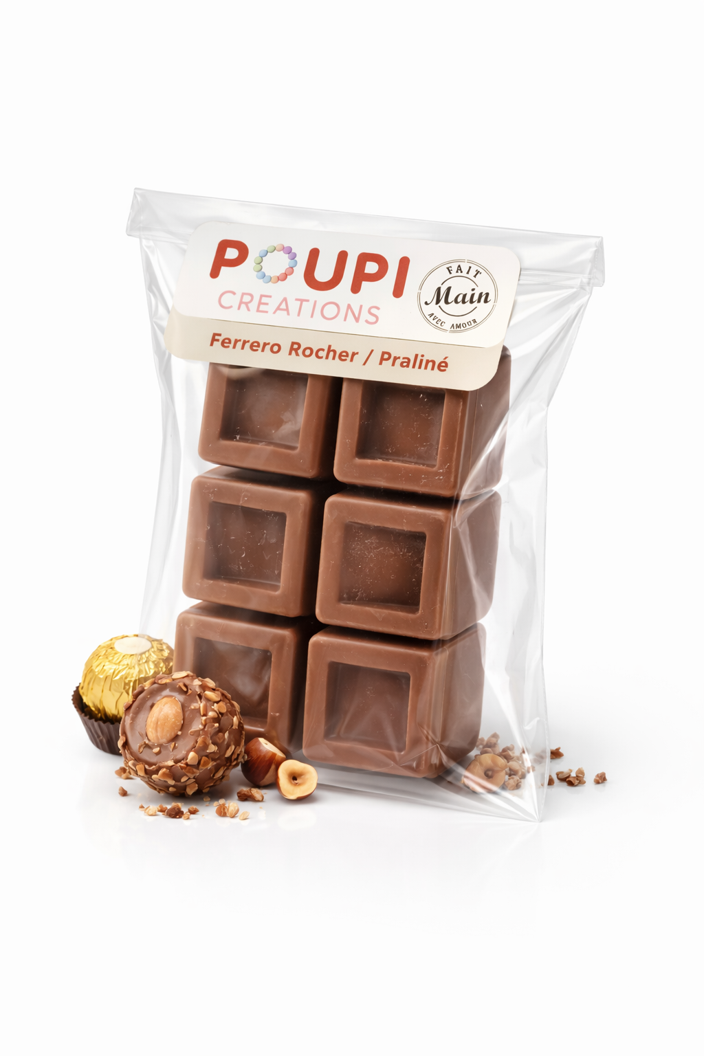 Ces fondants diffusent une senteur intense et réconfortante de rocher praliné, mêlant chocolat et noisette pour une ambiance chaleureuse et cocooning.